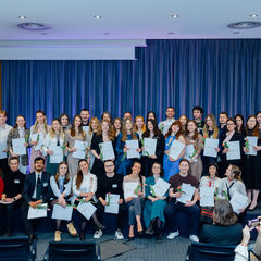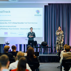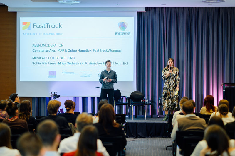 Rückblick: FAST TRACK – Abschluss des zweiten Jahrgangs in Berlin. Das Förderprogramm FAST TRACK hat über 90 Menschen mit Fluchtgeschichte aus der Ukraine dabei begleitet, eigene soziale Projekte umzusetzen, ihre Kompetenzen zu stärken und sich aktiv in die Gesellschaft in Deutschland einzubringen. Durch Qualifikationsangebote, ein individuelles Mentoringprogramm und praxisnahes Lernen entwickelten die Teilnehmenden neue Perspektiven und bauten nachhaltige Netzwerke auf. Beim abschließenden Vernetzungstreffen in Berlin reflektierten die Teilnehmenden ihre Erfahrungen, stärkten gezielt ihre Fähigkeiten – unter anderem in den Bereichen Networking und Public Speaking – und präsentierten ihre sozialen Projekte. Höhepunkt der Abschlussveranstaltung am 16. April war die feierliche Urkundenverleihung an den zweiten FAST‑TRACK‑Jahrgang. In einem feierlichen Rahmen wurden die Leistungen, das Engagement und die persönliche Entwicklung der Teilnehmenden gewürdigt und sichtbar gemacht. Gemeinsam mit Mentor:innen, Kooperationspartner:innen und weiteren Gästen wurde nicht nur der gelungene Projektabschluss gefeiert. Die Veranstaltung bot zugleich Raum für Austausch, Vernetzung und die Entstehung neuer Synergien – als Grundlage für weitere Kooperationen und innovative soziale Projekte. Die Teilnehmenden des zweiten Jahrgangs bereichern nun die starke DSI-Alumni-Community – sie sind Multiplikator:innen, Vorbilder und Change Maker, die zeigen, was möglich ist, wenn junge Geflüchtete gezielt gefördert, vernetzt und gehört werden.