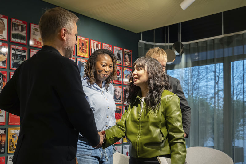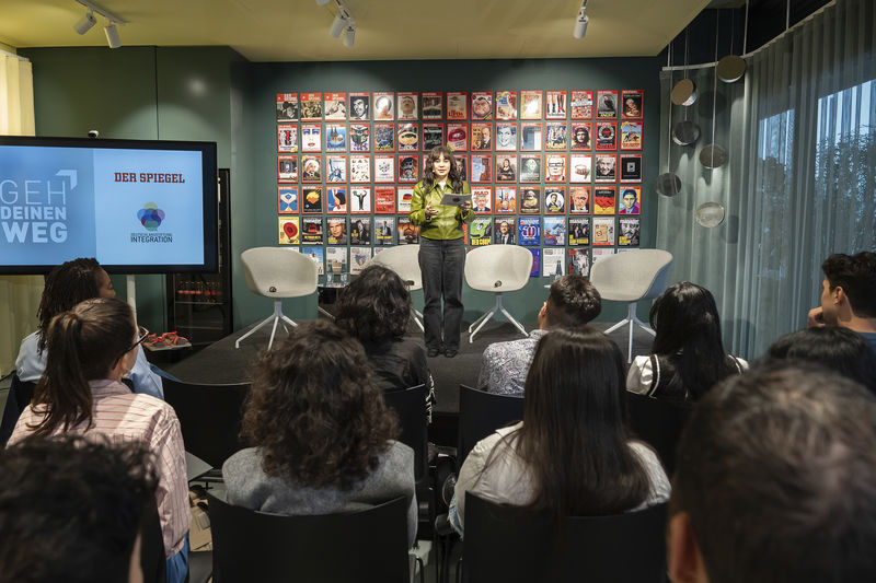 Am 23. Januar startete der dritte Jahrgang der GDW-Journalismusstipendien 2026 im SPIEGEL-Haus in Hamburg. Die Nachwuchsjournalist:innen Mayank Sharma, Jaya Mirani, Amin Al Magrebi und Sharin Santhiraraja-Abresch sind Teil dieses Förderprogramms. Gemeinsam mit dem SPIEGEL unterstützt die Deutschlandstiftung Integration die Stipendiat:innen auf ihrem Weg in die Medienwelt. Beim Auftakt lernten sie ihre Mentor:innen aus der SPIEGEL-Redaktion kennen und erhielten erste Einblicke in die Arbeitsbereiche der Redaktion. Höhepunkte der Veranstaltung waren die offizielle Aufnahme in das Programm und ein Kamingespräch zu den Themen „Diversität als Stärke und Diversität fördern in schwierigen Zeiten“ mit Thorsten Dörting, stellvertretender Chefredakteur des SPIEGEL, Irene Appiah, Politikerin in der Hamburgischen Bürgerschaft, und Mikolaj Ciechanowicz, Geschäftsführer der Deutschlandstiftung Integration, moderiert von Ekaterina Astafeva, einer Stipendiatin des letzten Jahrgangs.