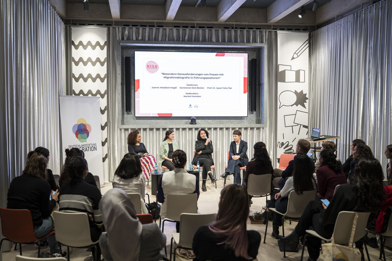 Am 7. November feierten wir den Abschluss des NISA Female Leadership Programms. In den vergangenen sechs Monaten haben 15 beeindruckende Frauen das erste intersektionale Leadership-Programm Deutschlands durchlaufen. Es umfasst ein Qualifizierungsprogramm zu Leadership-Themen, ein 1-1 Mentoring durch eine weibliche Führungskraft sowie den Zugang zu einem starken Netzwerk. Durch das Programm soll auf die Benachteiligung von Frauen mit Migrationsbiografie in Führungspositionen aufmerksam gemacht und gleichzeitig ambitionierte Frauen empowert werden, ihre Karriereziele zu verfolgen.
