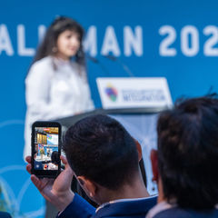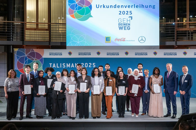 Am selben Tag wurde zudem der neue Jahrgang feierlich in das Stipendien- und Mentoringprogramm GEH DEINEN WEG aufgenommen. Neben der offiziellen Urkundenverleihung bereicherten Bühnenbeiträge von Stipendiat:innen sowie ein Town Hall Meeting mit dem Stiftungsratsvorsitzenden und Bundespräsidenten a.D. Christian Wulff das Programm.