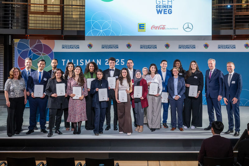 Mit dem TALISMAN für gesellschaftlichen Zusammenhalt ehrte die Deutschlandstiftung Integration in diesem Jahr die deutschen Sportler:innen Malaika Mihambo, Yemisi Ogunleye, Leo Neugebauer und Elena Semechin. Sie wurden für ihre herausragenden Leistungen bei Olympischen und Paralympischen Spielen sowie für ihr gesellschaftliches Engagement ausgezeichnet. Die Preisträger:innen stehen exemplarisch für Fairness, Respekt und Teilhabe. Die Laudatio auf die Sportler:innen hielt Bundespräsident a. D. Christian Wulff. In seiner Ansprache wurden die sportlichen Erfolge und die Vorbildwirkung der Preisträger:innen hervorgehoben. Die Festrede des Abends hielt Bundeskanzler Friedrich Merz, Schirmherr der Deutschlandstiftung Integration. Gesellschafter Dr. Thomas Gauly eröffnete den Abend.