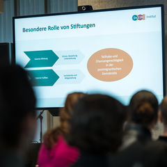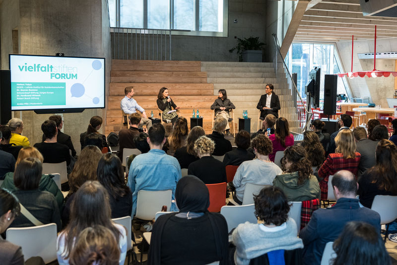In einer Keynote, Podiumsgesprächen, künstlerischen Beiträgen und einem anschließenden Get-together wurden aktuelle Entwicklungen und zukünftige Wege für ein diversitätsorientiertes Stiftungswesen beleuchtet. Ein zentraler Programmpunkt war die erstmalige Vorstellung der neuen empirischen Studie „Wie können wir Vielfalt stiften?“, die in Zusammenarbeit mit dem DeZIM-Institut entstanden ist. Sie zeigt, wie migrantische und migrantisierte Menschen Bewerbungsprozesse, Arbeitsalltag und Diversitätsstrukturen im Stiftungssektor erleben und wo Veränderungsbedarf besteht. Die Erfahrungen und Erkenntnisse der ersten Förderperiode von "Vielfalt stiften" bilden die Grundlage für den nächsten Entwicklungsschritt des Programms – und für noch mehr Vielfalt im Stiftungssektor.
