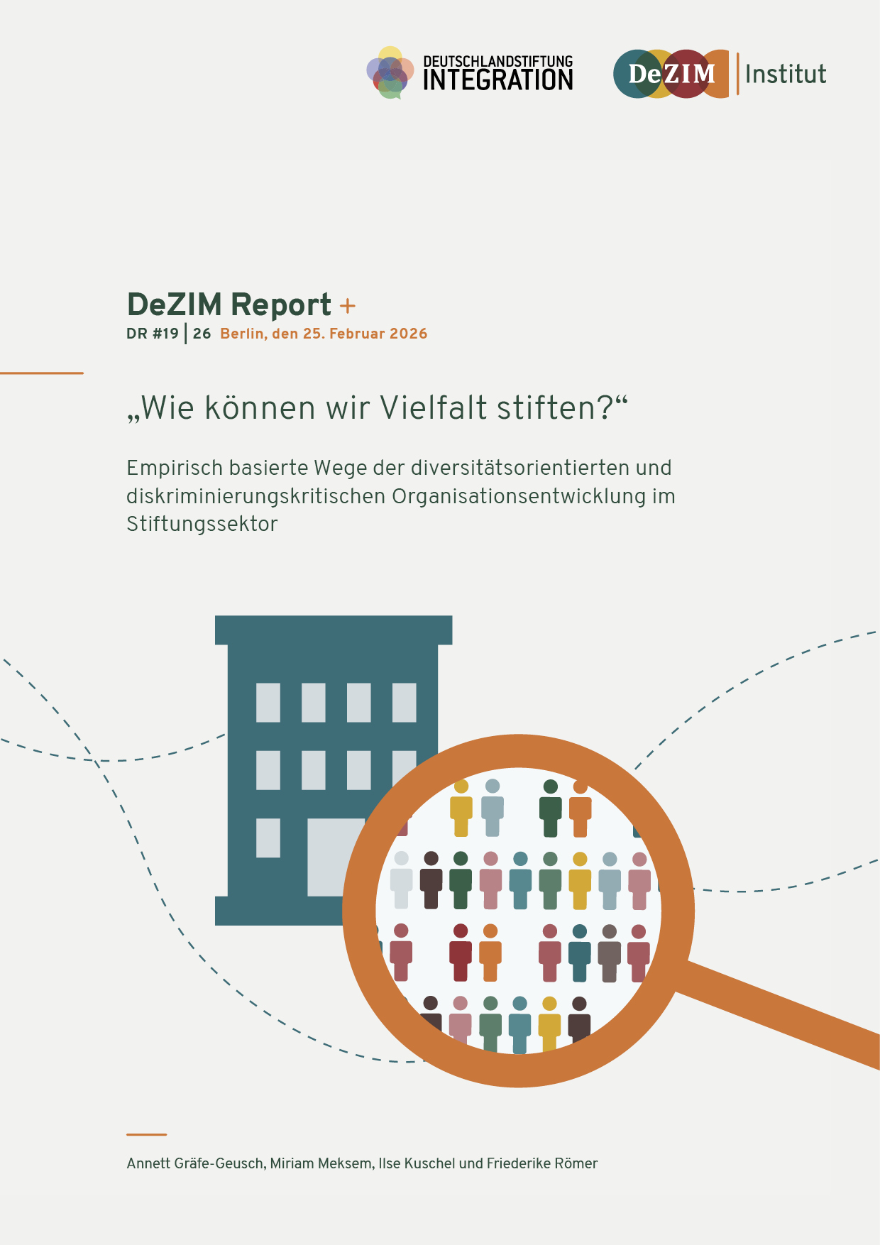 Gräfe-Geusch, Annett; Meksem, Miriam; Kuschel, Ilse und Römer, Friederike (2026): „Wie können wir Vielfalt stiften?“ Empirisch basierte Wege der diversitätsorientierten und diskriminierungskritischen Organisationsentwicklung im Stiftungssektor. DeZIM Report 19, Berlin: Deutsches Zentrum für Integrations- und Migrationsforschung (DeZIM).